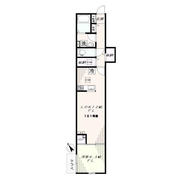 間取内容 LDK12畳 × 1畳 洋室4.5畳 × 1畳